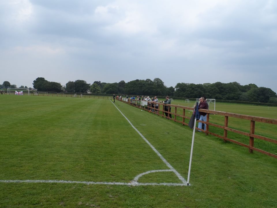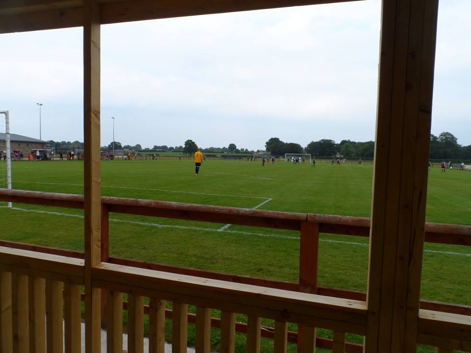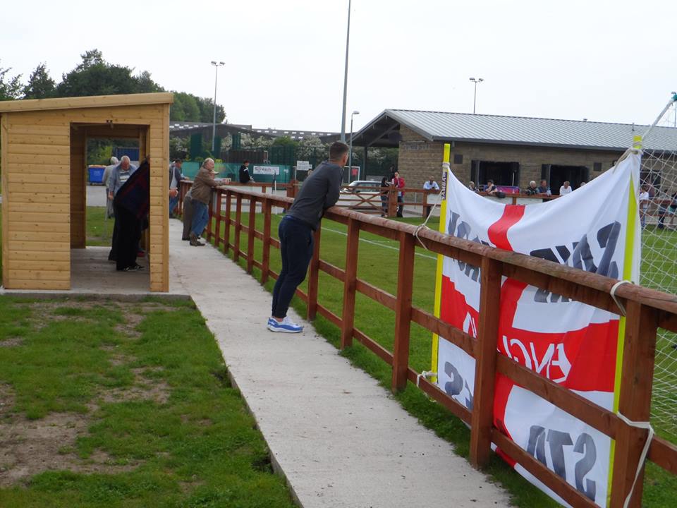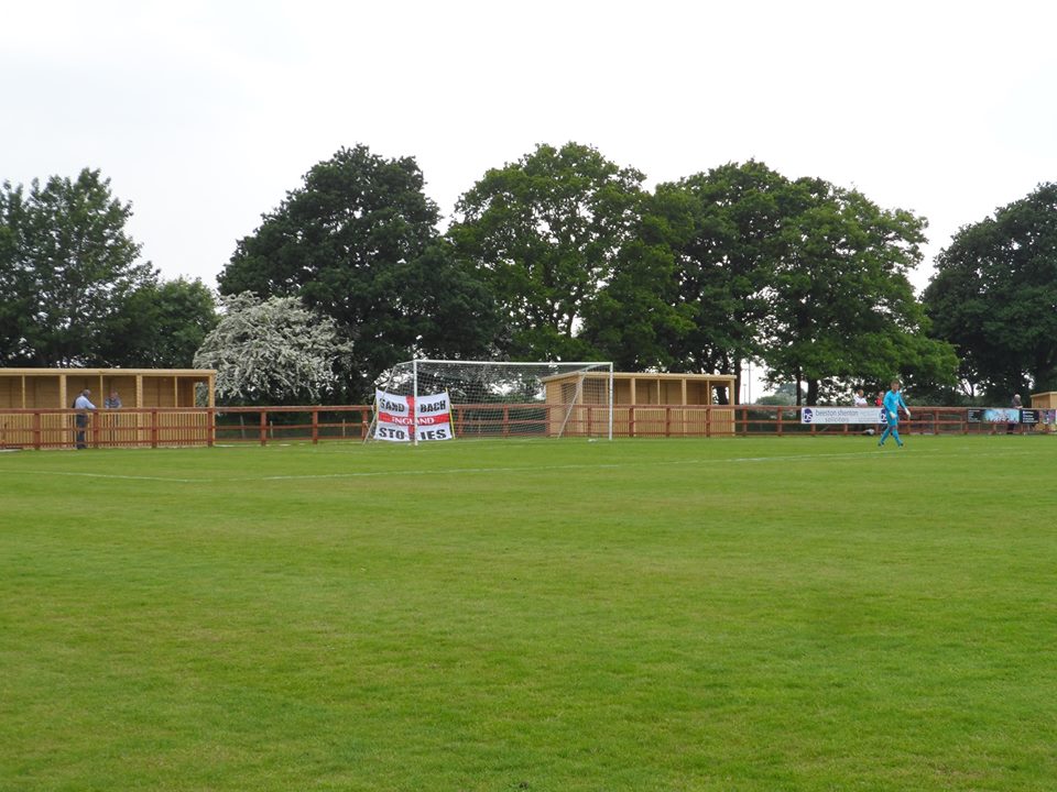 The rest of the ground consists of two wooden sheds which stand behind the goal on the right; they must have had a special offer on sheds at B&Q. As Emil says, you can tell you’re in a nice part of the country when you can have wooden infrastructure and leave netting up overnight without fear of it all being burnt down by the local youths. Floodlights are not currently in place but all of the wiring is ready, so hopefully they will be up by the end of September when the light starts fading and more midweek matches start being piled upon clubs. In the corner of the ground there’s a large pile of red plastic seats which have been taken from Stoke City’s ground, I am informed that these will be used to create a seated stand which will be needed within the next year to meet ground grading standards.