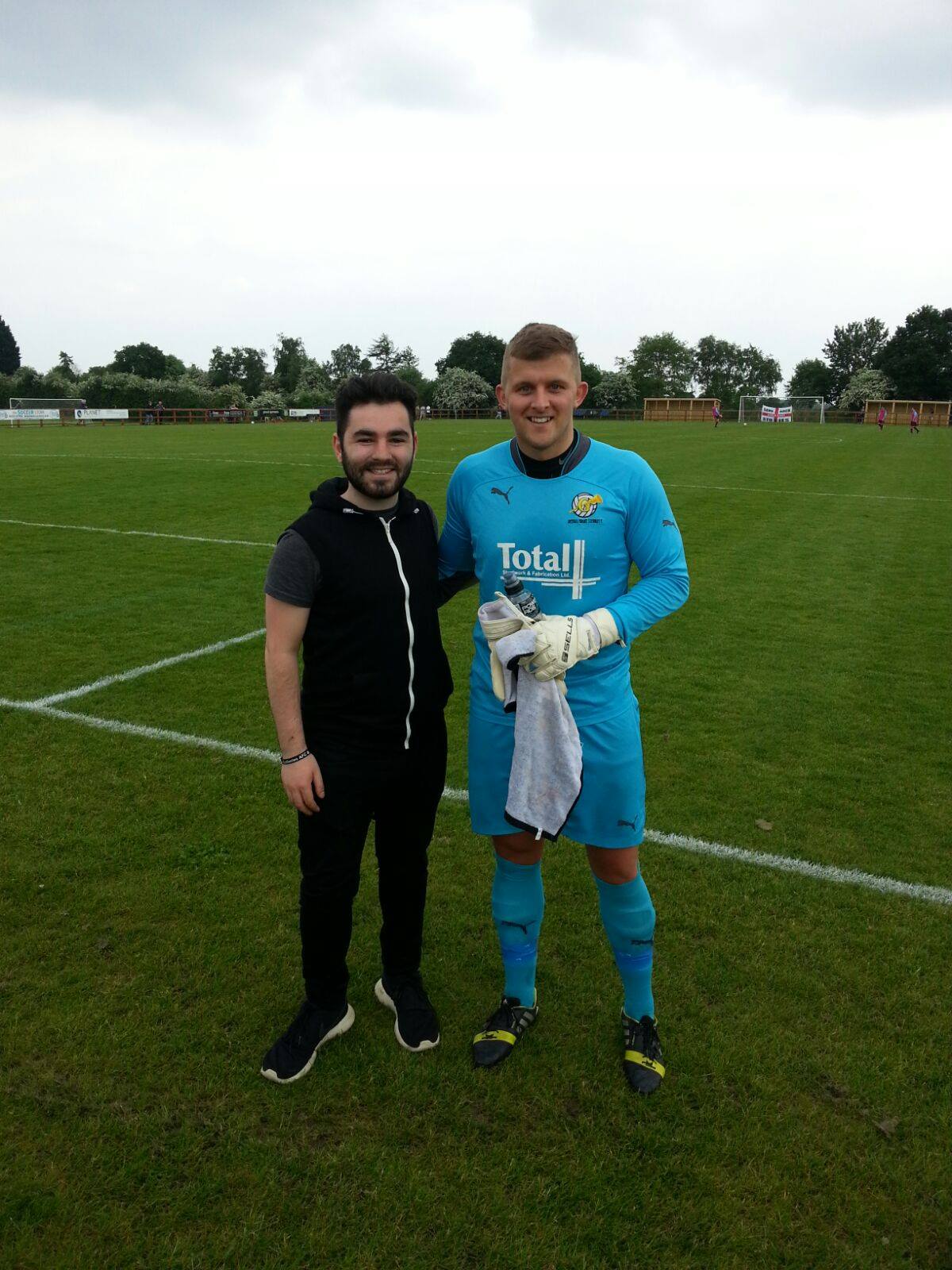 Emil and I headed around to the far goal as former Colls goalkeeper Lee Novak was in net for the visitors. We had a good laugh with our Bolton Hospital Cup Final hero of 2012 (he saved a penalty in the shootout against Eagley) without putting him off too much, we hope. Matt was arguably chatting to a more famous footballer as he stayed with Liverpool legend Ronnie Moran and his son Paul.