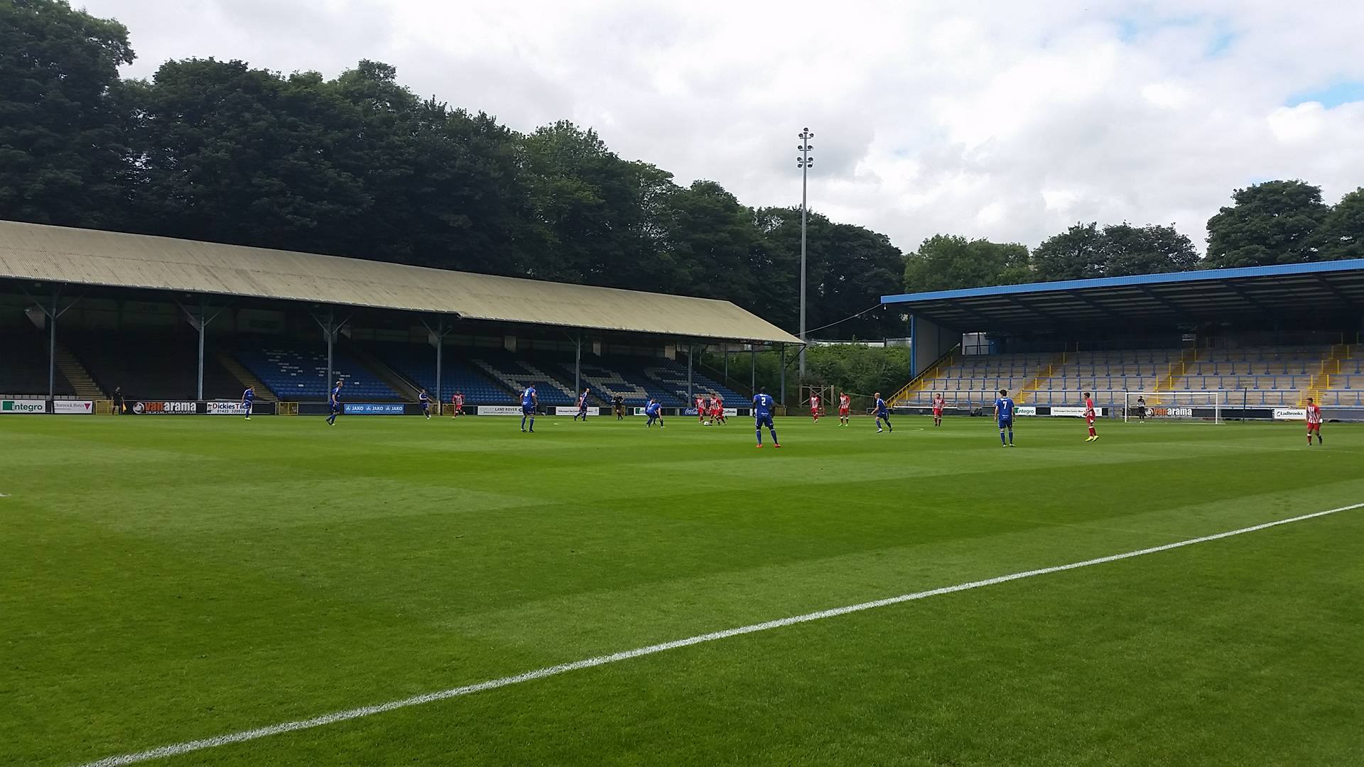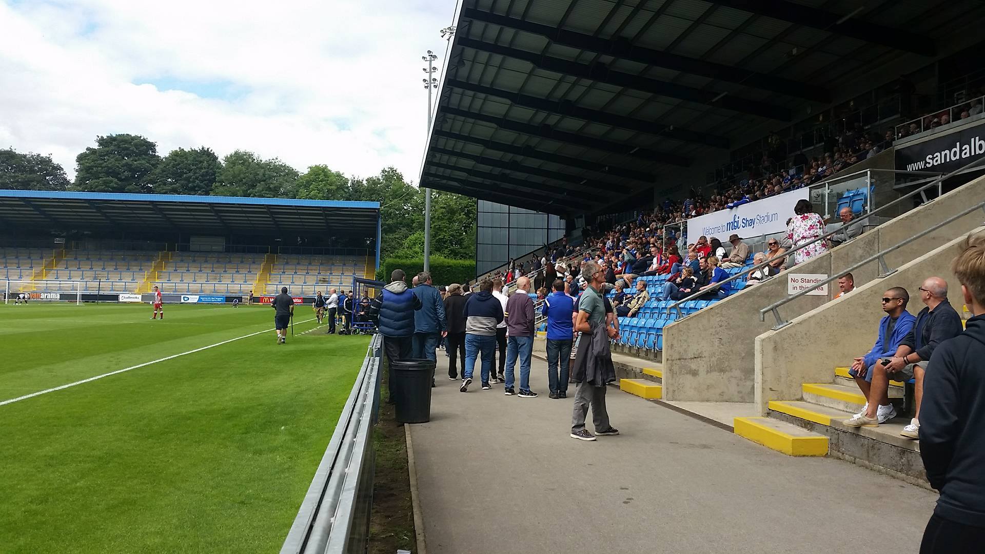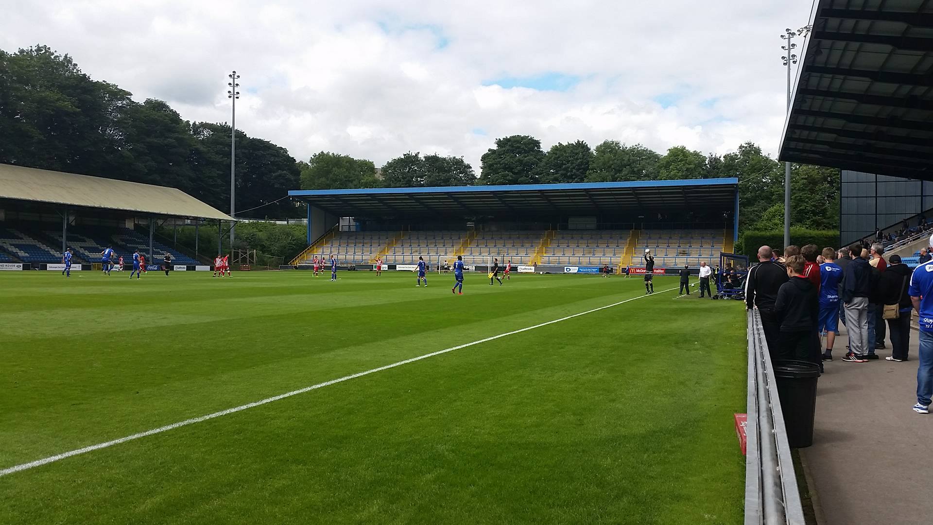 The North Stand, which is a large terrace behind the near goal was opened in 1998 allowing Halifax to return to the Football League when the won the Conference. The South Stand was opened within a year of this making it what is now a very impressive non-league venue. It’s quite overwhelming thinking that Curzon Ashton and Salford City will be playing here this coming season. Even more overwhelming is the thought that back in 2012, Atherton Collieries came mightily close to playing here in the FA Cup but unfortunately we lost 2-1 at Abbey Hey, going out of the competition with nothing more than a whimper.