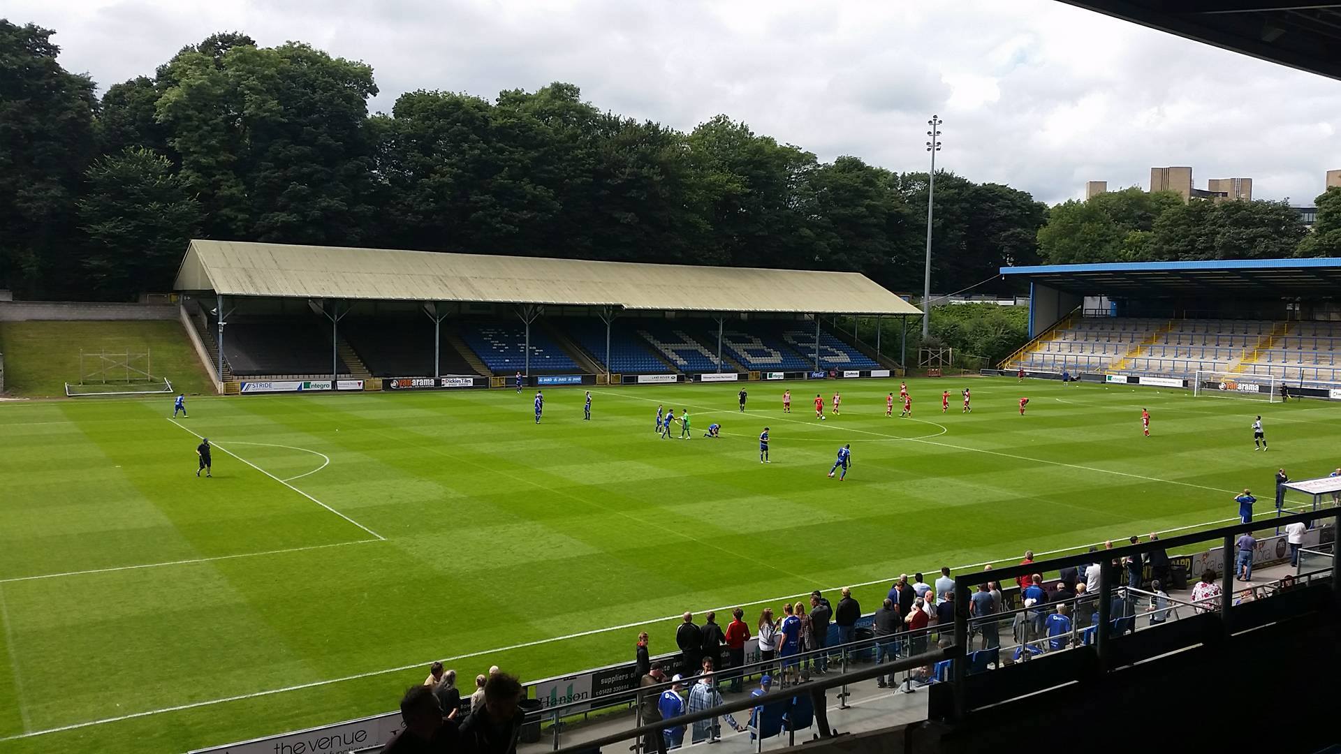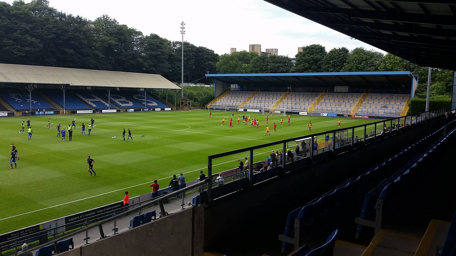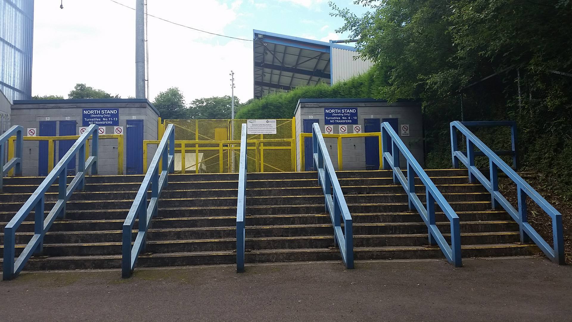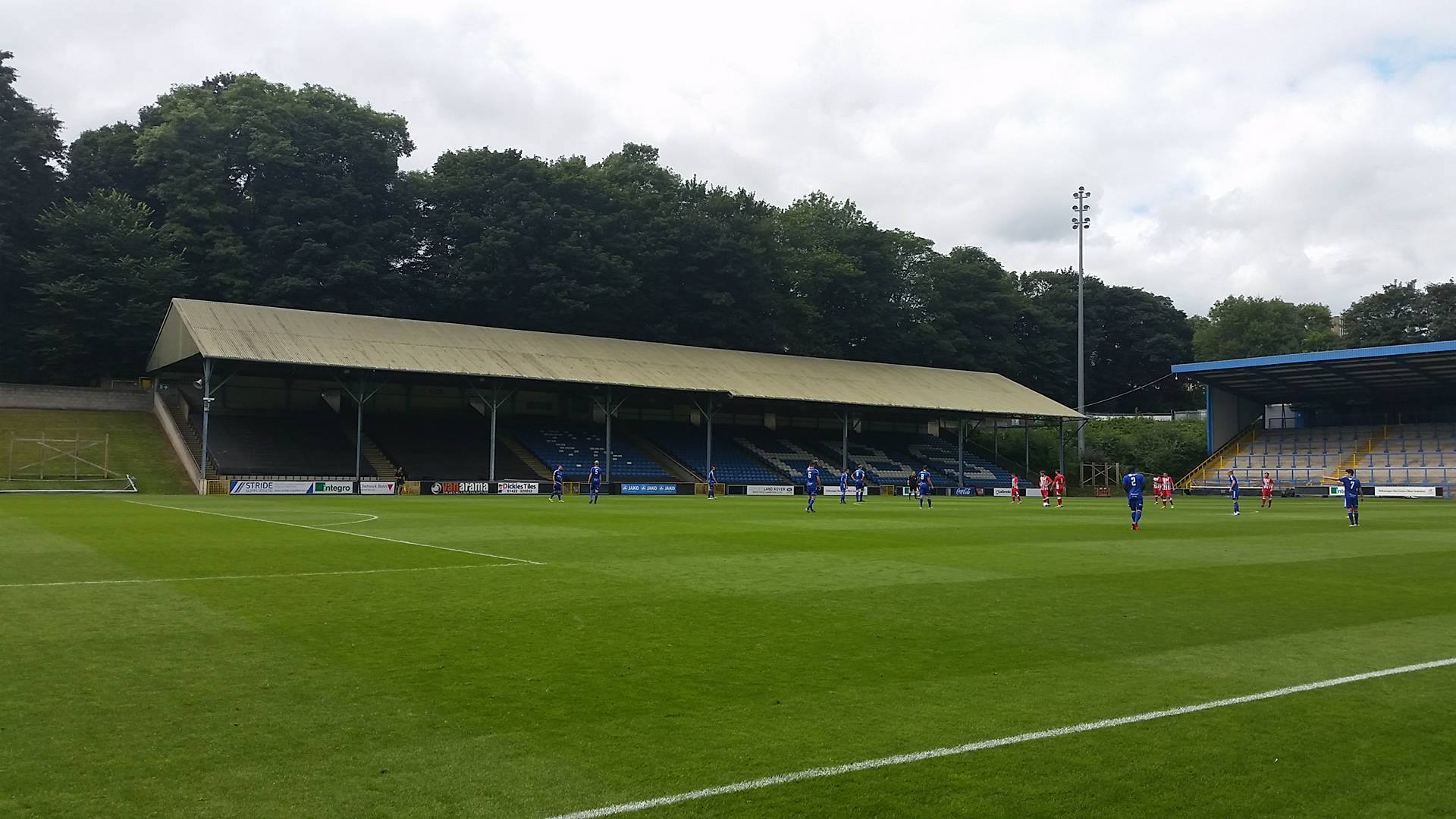 The North Stand, which is a large terrace behind the near goal was opened in 1998 allowing Halifax to return to the Football League when the won the Conference. The South Stand was opened within a year of this making it what is now a very impressive non-league venue. It’s quite overwhelming thinking that Curzon Ashton and Salford City will be playing here this coming season. Even more overwhelming is the thought that back in 2012, Atherton Collieries came mightily close to playing here in the FA Cup but unfortunately we lost 2-1 at Abbey Hey, going out of the competition with nothing more than a whimper.