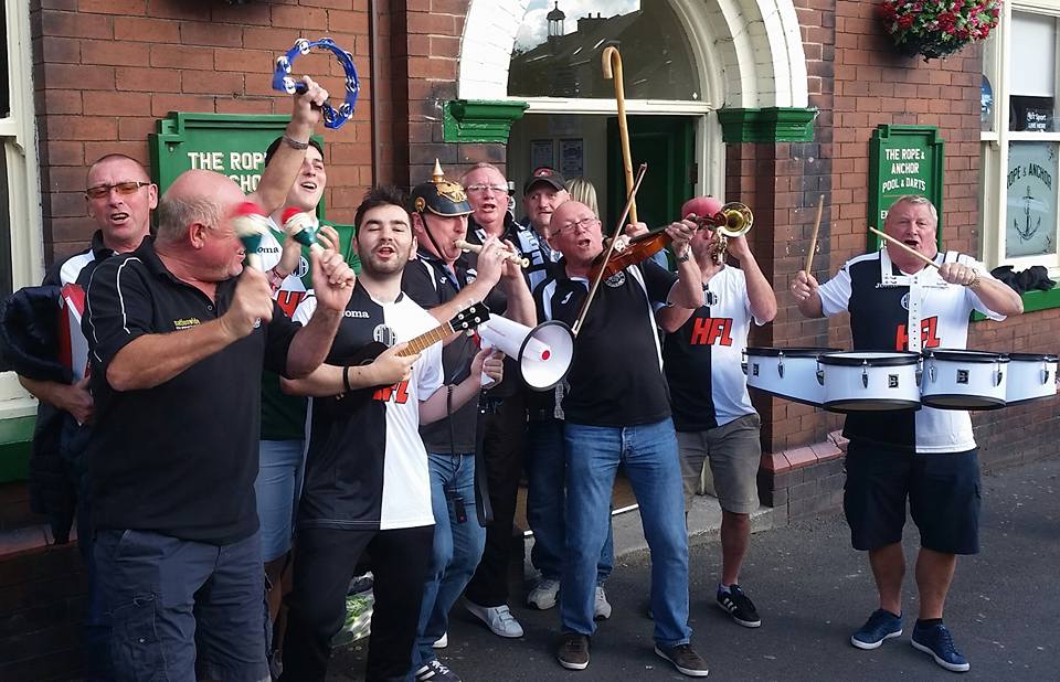Lee had now arrived in the town and we could see him walking past the bus station that was below us. He was sporting his Atherton Collieries shirt which was a beautiful sight. I would have worn mine, but mine was in the wash following my gallivanting the previous evening. Instead, I had in my possession my 2011 Halifax shirt, sponsored by the associates of everybody’s favourite non-league competition, Doodson. This was the season that the Shaymen gained promotion from the Northern Premier League rather convincingly. Brad, my mate who supports Halifax was offloading a few of his shirts a couple of years ago so I added this shirt to my collection for around £10 but had never found a purpose for it until this match. We had seen Halifax beat Grimsby at Wembley just a couple of months ago in The FA Trophy Final, but as we had a Harry The Haddock in our party we decided to go in the Mariners end; the Halifax shirt remained at home.