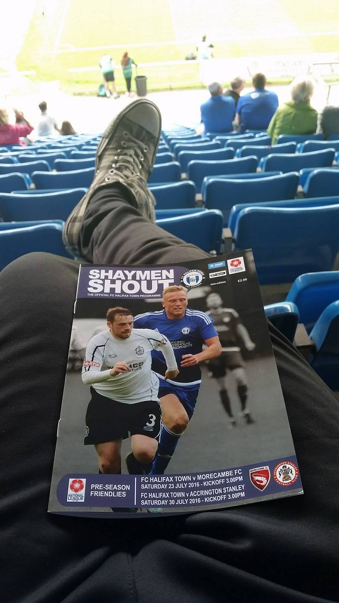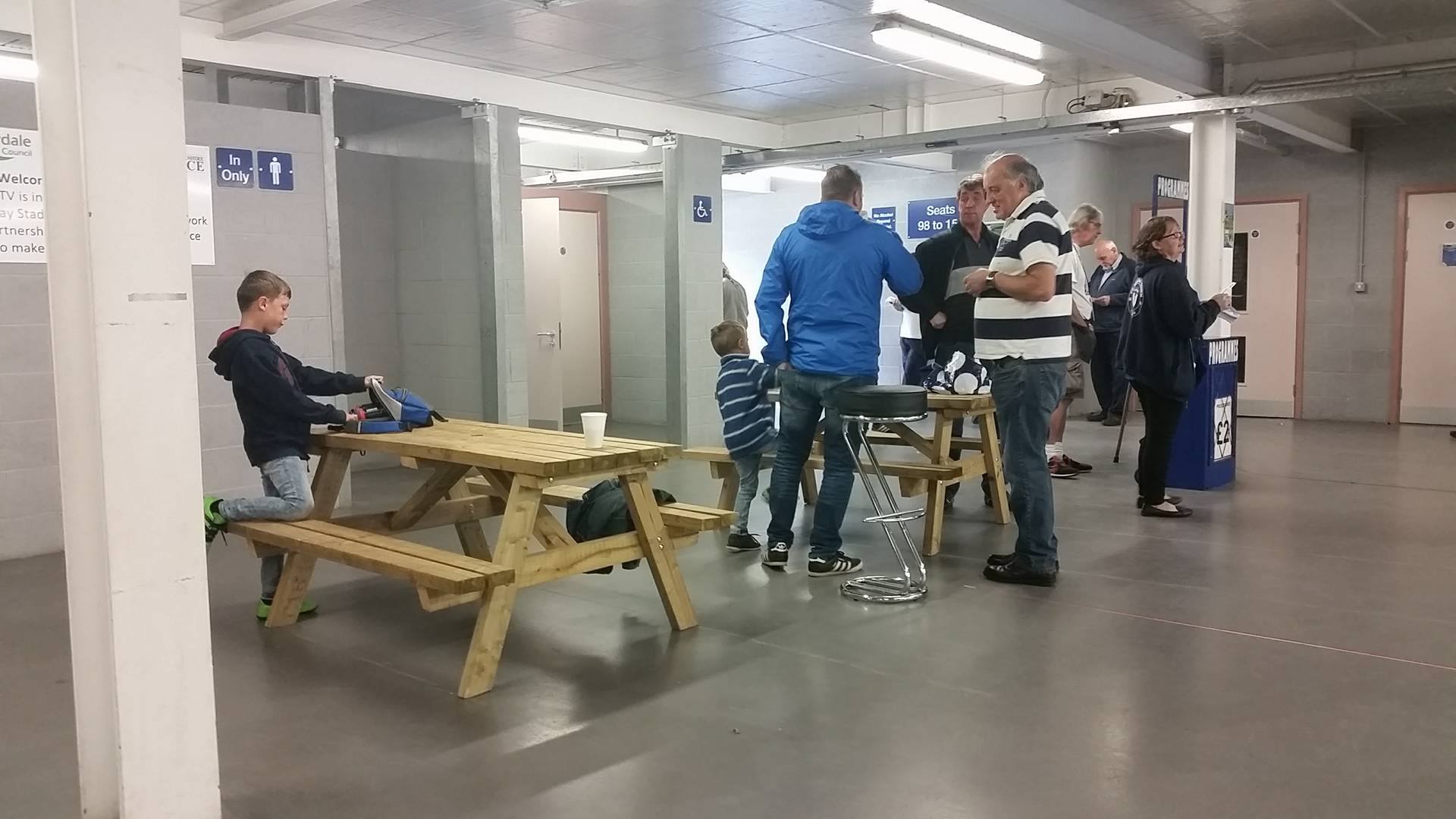 It was just £6 for me to get in as a student and a further £2 for the programme which covered both the Accrington match and the one against Morecambe the week before. This was bought from a bloke who was perched behind a small podium beside a row of benches which were lined up along the concourse. I don’t think I’d ever seen wooden beer garden benches inside a football ground before (maybe at FC United) but they seemed to work quite well. In fact, the whole concourse was nice, open and clean.