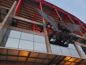 Features such as having the club shop in some form of cylindrical supermarket, operating in a one way system were just odd. Fan areas with hardly anything to do seemed ridiculous and lazy. To top it all off, you couldn’t even walk fully around the stadium either. Having almost been knocked out by the club’s famous eagle as it was carried out of an emergency exit we wandered back around and decided to sup a pint next to the Eusebio statue. Here we did a spot of people watching for half an hour or so, admiring the different poses that the locals were having with the bronze version of the football legend. After much consideration, I went for the classic ‘sit on the ball pose’ and improvised with a point of the finger. Nailed it.