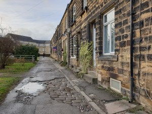 An inconspicuous pathway opposite the station led me in the right direction. A polite notice hammered into the fence reminded pedestrians that this was a public footpath. Morton Terrace provided an immediate quintessential welcome to a northern town. Sacrilegiously, a mismatch of cobbled stone had been covered in a thick, tarmac blanket. Gardens, sporadically laid out on the left hand side accompanied the row of houses which had all been carefully crafted out of local stone many generations ago.