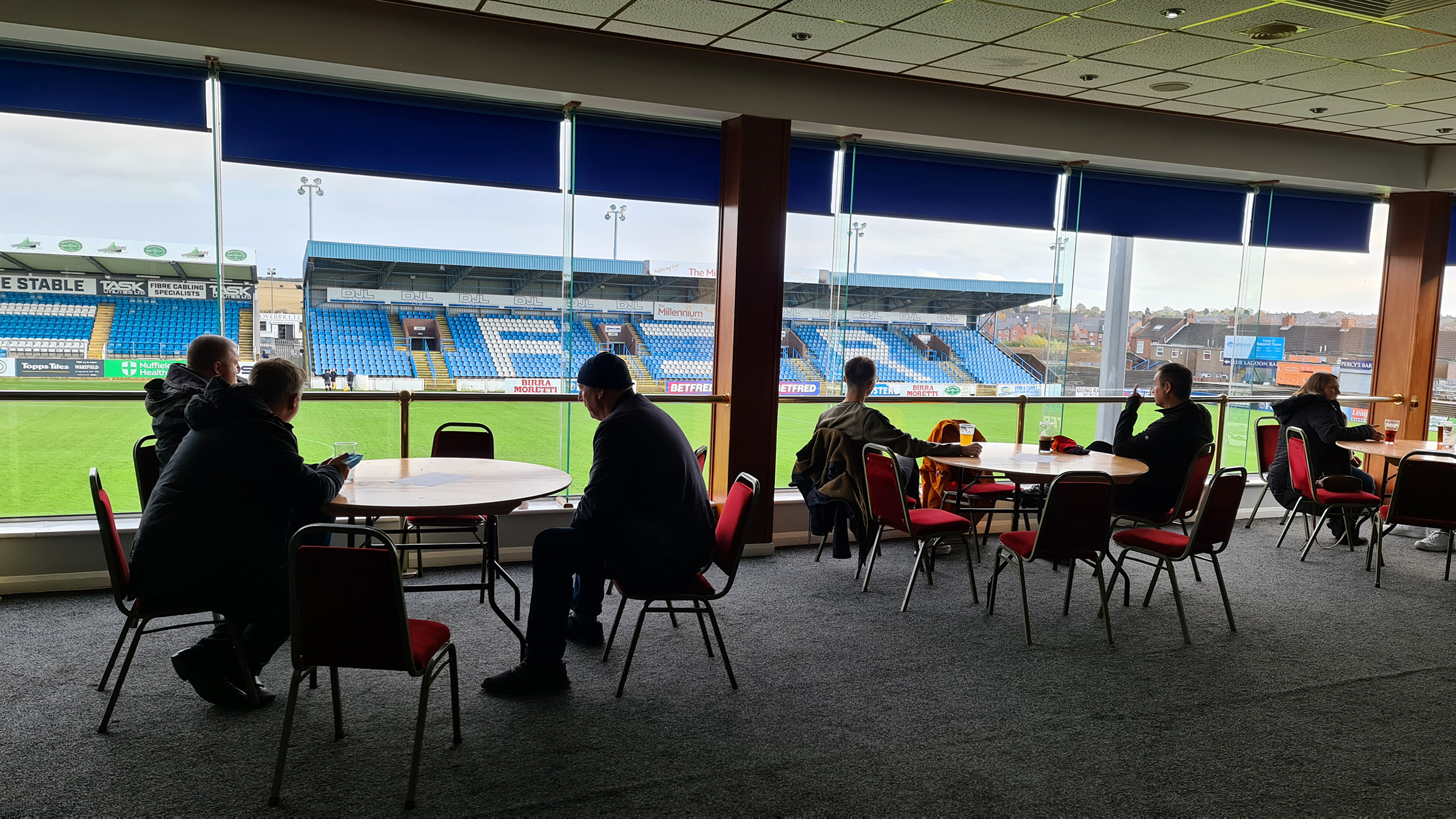 After last weekend’s trip to Wells City in Somerset, this was a relatively local trip for me. It took just over an hour to drive across from Atherton, with the deluge of rain across the moors turning the M62 into a treacherous obstacle course on which every car was aquaplaning. I pulled into the vast car park at Post Office Road in one piece and headed towards the main entrance of the ground, a door which is only open to hospitality guests and visiting dignitaries on a normal match day.