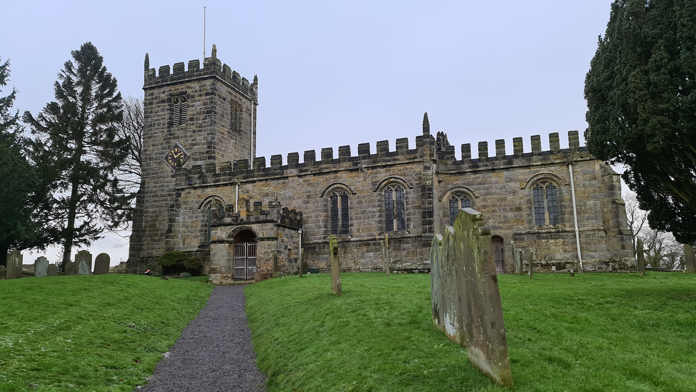 Turning left, up the steep Crayke Lane we walked past some more beautiful houses before arriving at the village church, with the current structure dating back to 1490. It is dedicated to St Cuthbert, who formed a monastery here, allowing him to rest while making frequent visits to York from Lindisfarne. As well as his monastery, Cuthbert is linked to the village further. Years after his death, Lindisfarne, the coastal island where his remains were kept as holy relics, was invaded by the vikings. The monks fled, taking Cuthbert’s remains with them around the north of England; they rested in the safety of Crayke for months.