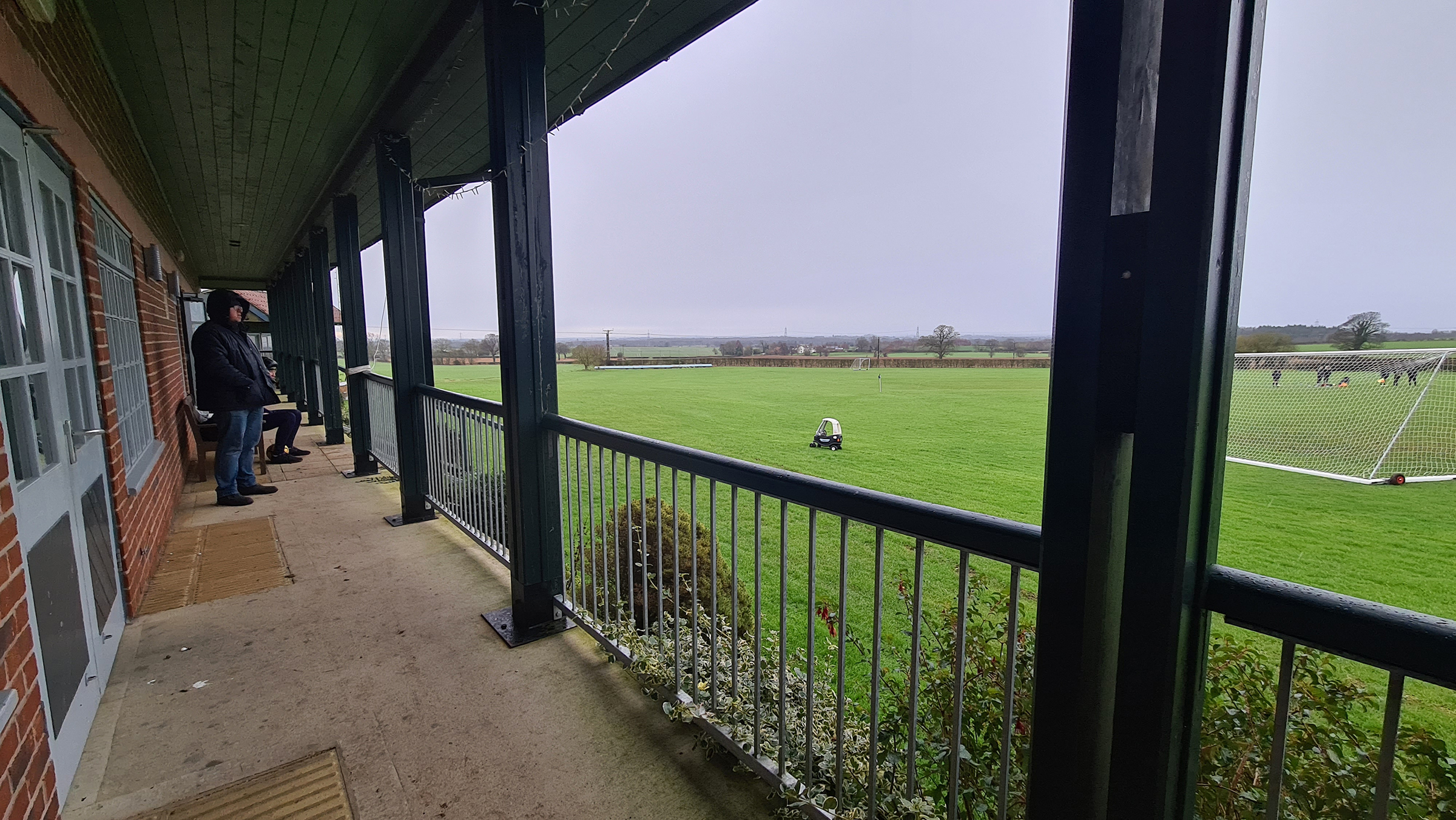 Kick-off was now just under ten minutes away, so we headed down to the lower road of the village where the game was being held, opting to take a shortcut through a bridleway which proved to be quite slippery underfoot. Sitting at the very edge of the village, The Crayke Sports Club is home to the local football team and cricket club. A grand pavilion is built into the gradual slope of the pitch, which verges off into the fields which disappear over the horizon.