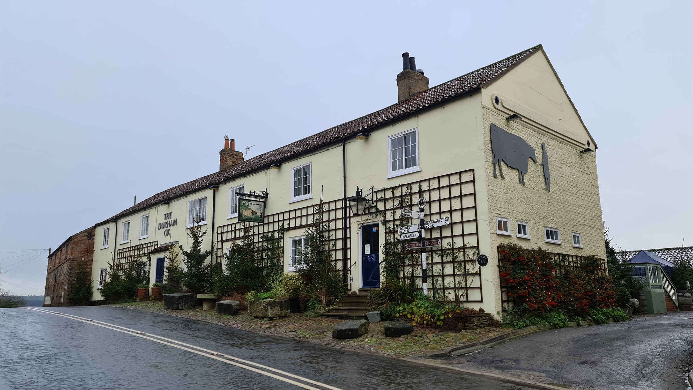 Crayke is home to a plethora of traditional buildings, all with their own stories and history. My favourite, which was unfortunately closed was of course the village’s pub, the Durham Ox. Sitting on the main road, on this occasion it was lined with a group of Christmas trees outside a firmly locked front door. It really was a shame not being able to enjoy a pint and some food in there, as it looked beautiful but helpfully, the road sign outside informed me it was only 15 miles away from York, meaning I will definitely head back there one day to see what lies inside.