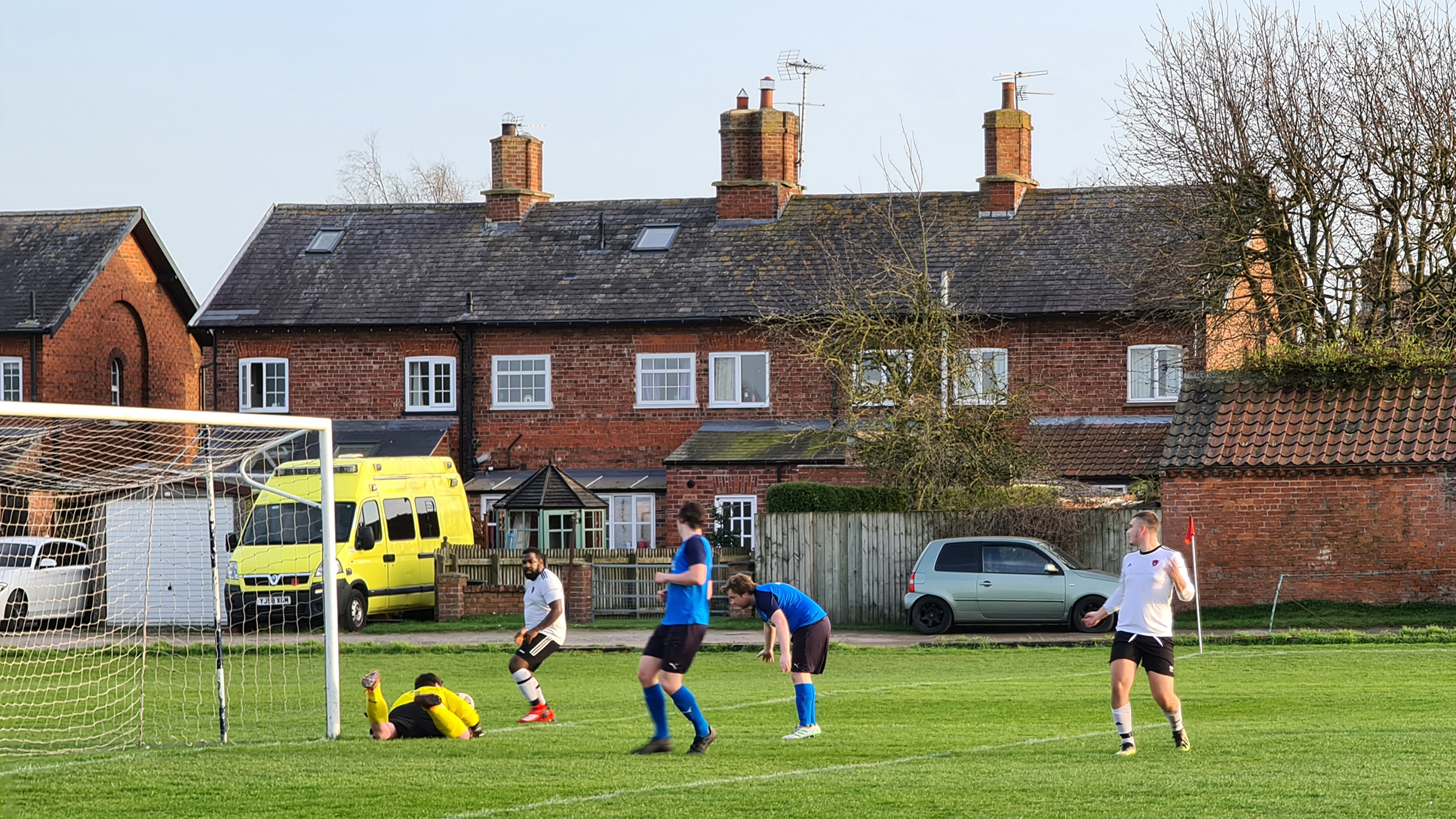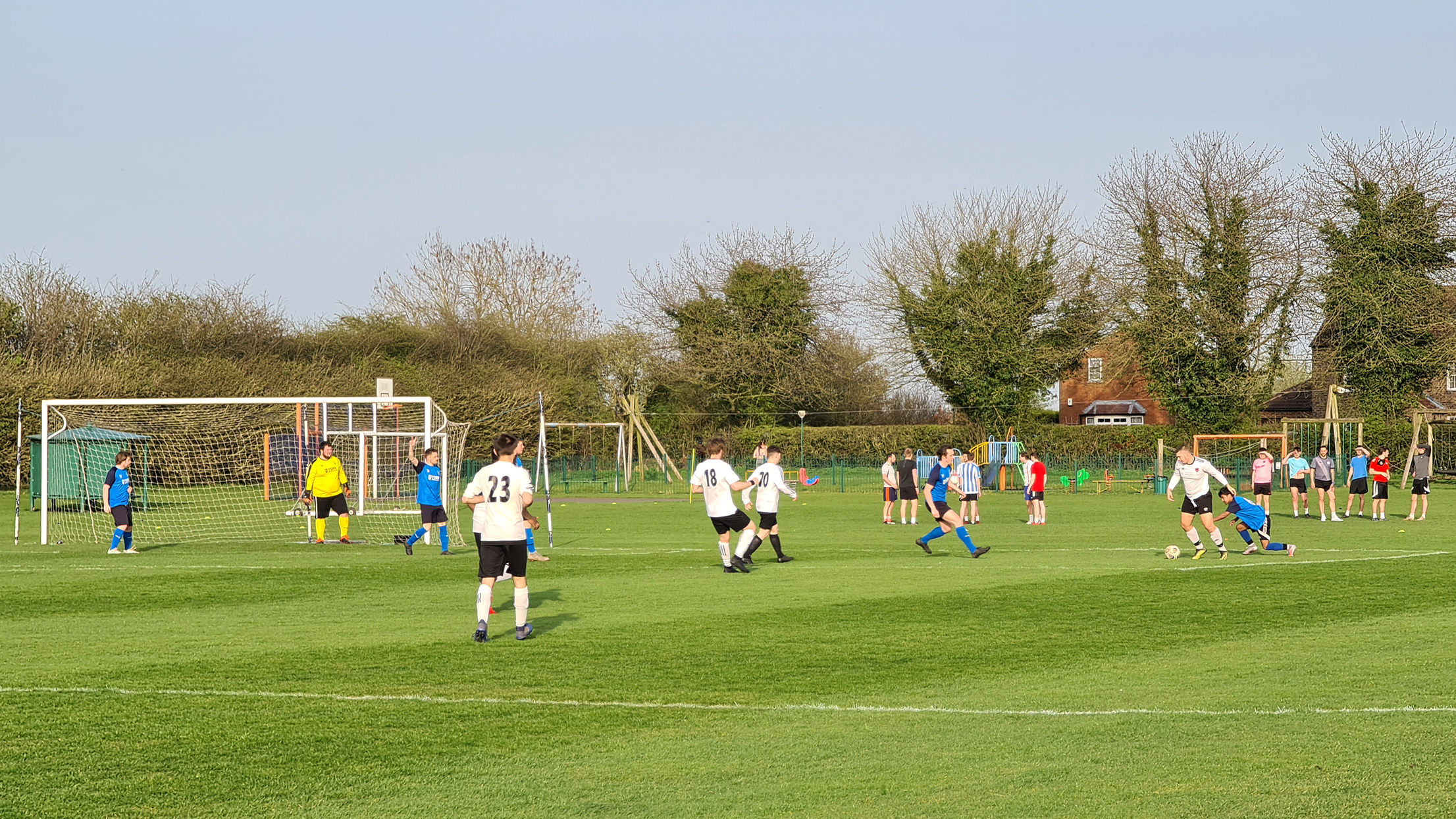 With minutes left until kick-off, Newton had been invaded by vast swathes of cars, with parking at a premium. Sharing lifts was out of the question in these difficult times, making the village centre feel like downtown Delhi during rush hour. My car was unceremoniously dumped around the corner on Moor Lane before I traversed over some grass bankings, carefully evaded heaps of daffodils and headed up an access track which leads behind neighbouring houses and into the local playing field.