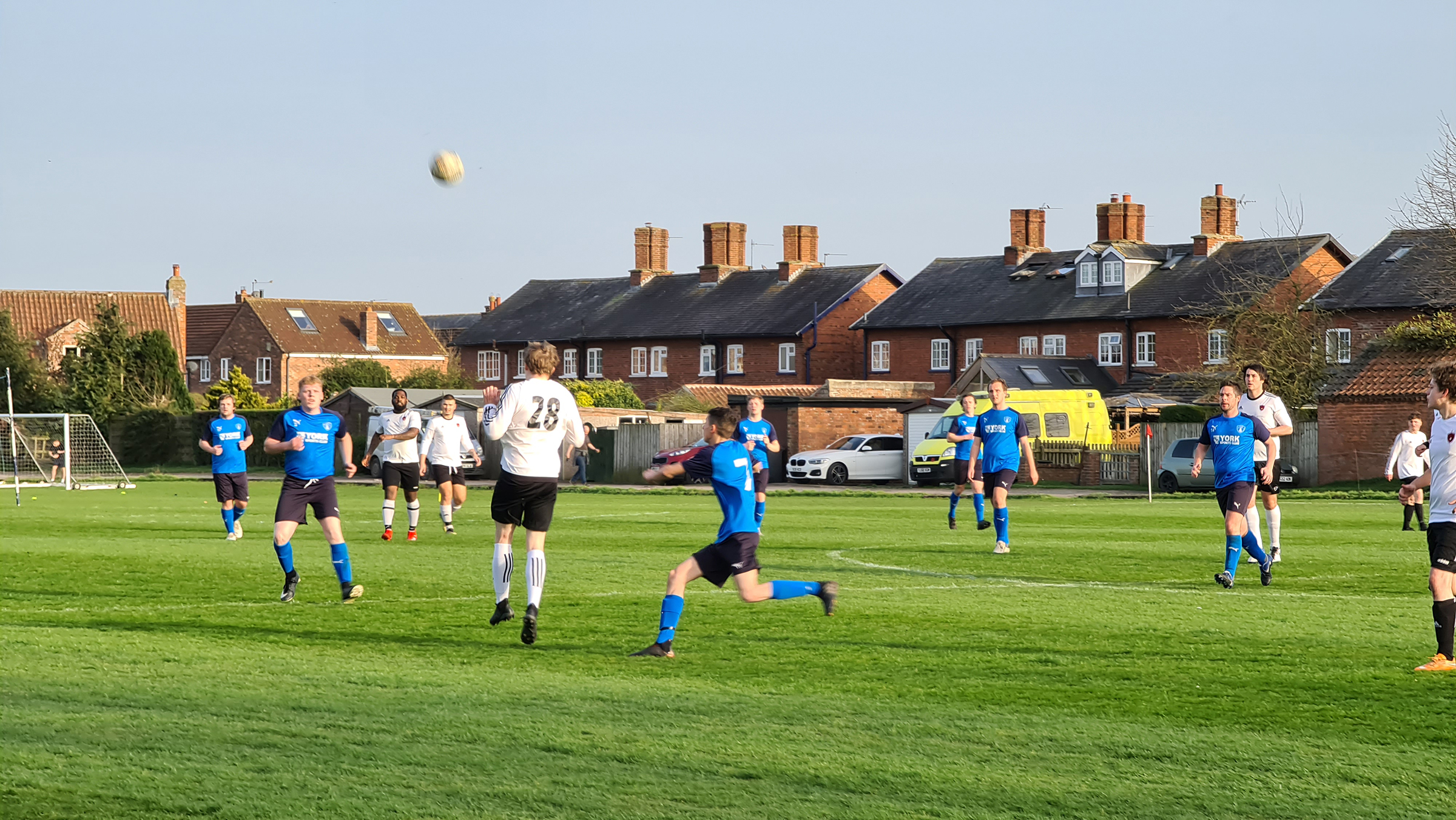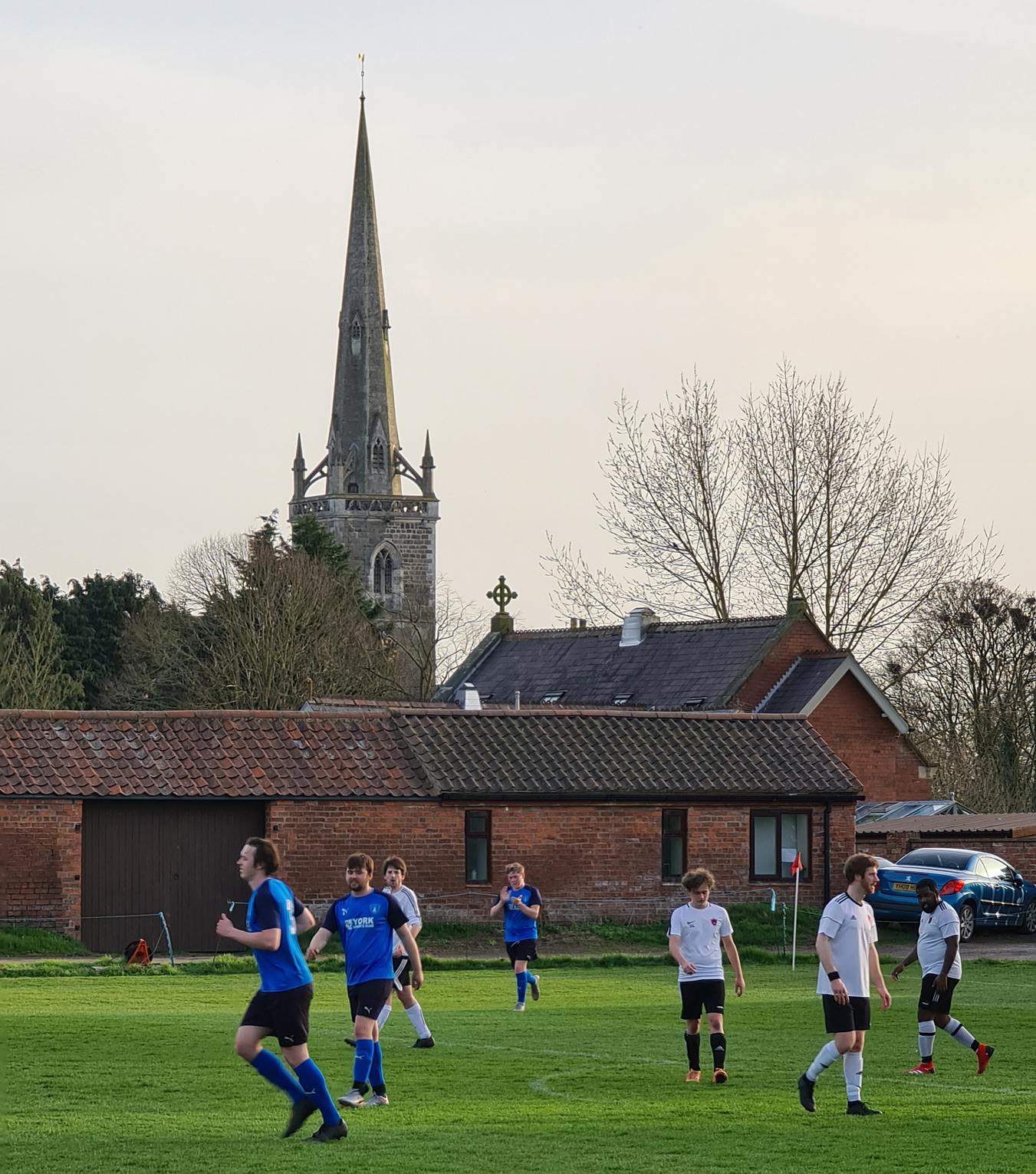 Leaving the city centre with half an hour to go until kick-off, the drive over was reminiscent of the opening credits of Antiques Roadshow with me driving through rolling countryside, following a classic car which seemed to have a collection of delicate antiquities poking out above the seats. My route seemed to take me on what felt like the long way round but suddenly a sharp left turn took me on to Tollerton Lane, where the Newton-on-Ouse Playing Field is found. Stretching for a couple of miles, as soon as discarded farming machinery turned into parked up cars, I knew that I had found my destination.