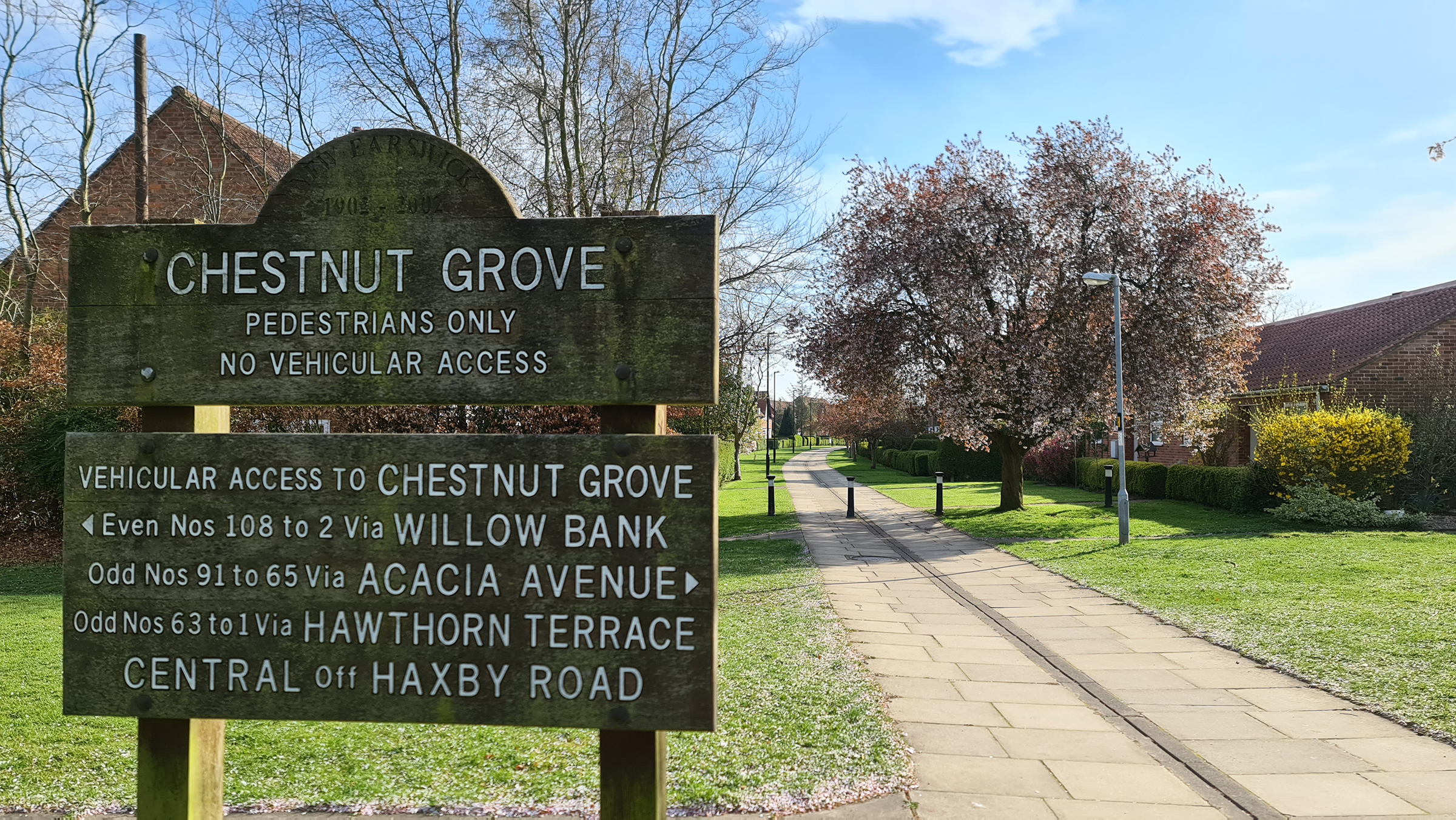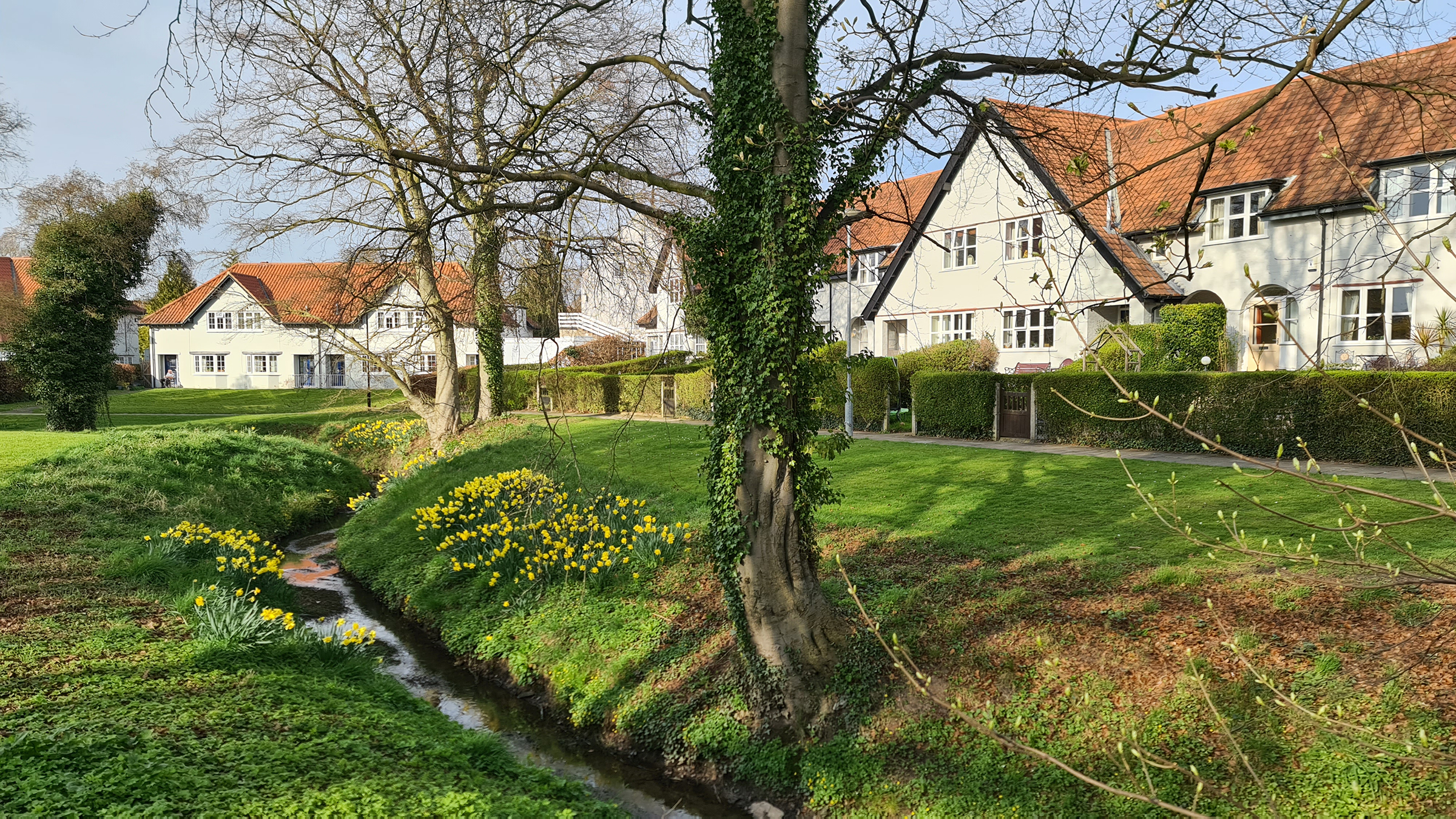 Having emerged on to the main road, we entered New Earswick, which welcomed passing visitors with carefully planned daffodil lined streets. On the left, we passed the Folk Hall, which is the focal point of the village having undergone a £1 million refurbishment in 2018. It was originally built in 1906 and was extended in 1935, allowing it to host larger events and proving itself as a real hub in the heart of the community. It’s halcyon days were in the 1960’s when in evenings, the place would come alive with small gigs and club nights.