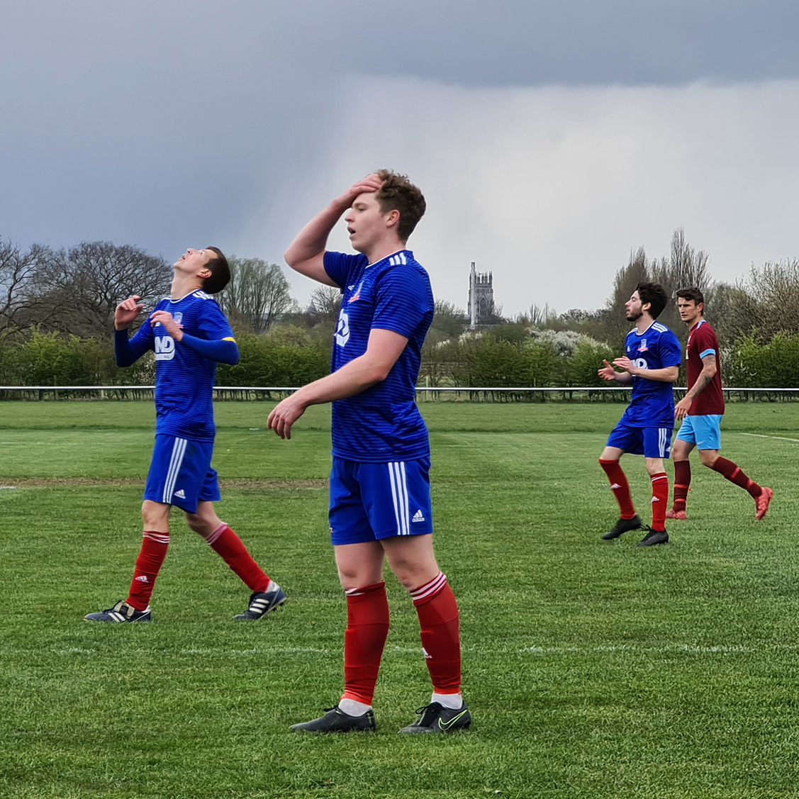 Half time arrived and in the far distance, the grey clouds which had formed before the game had now turned a darker, more morose shade. They had taken on the shape of a long, draping curtain which slowly hovered towards the Minster.