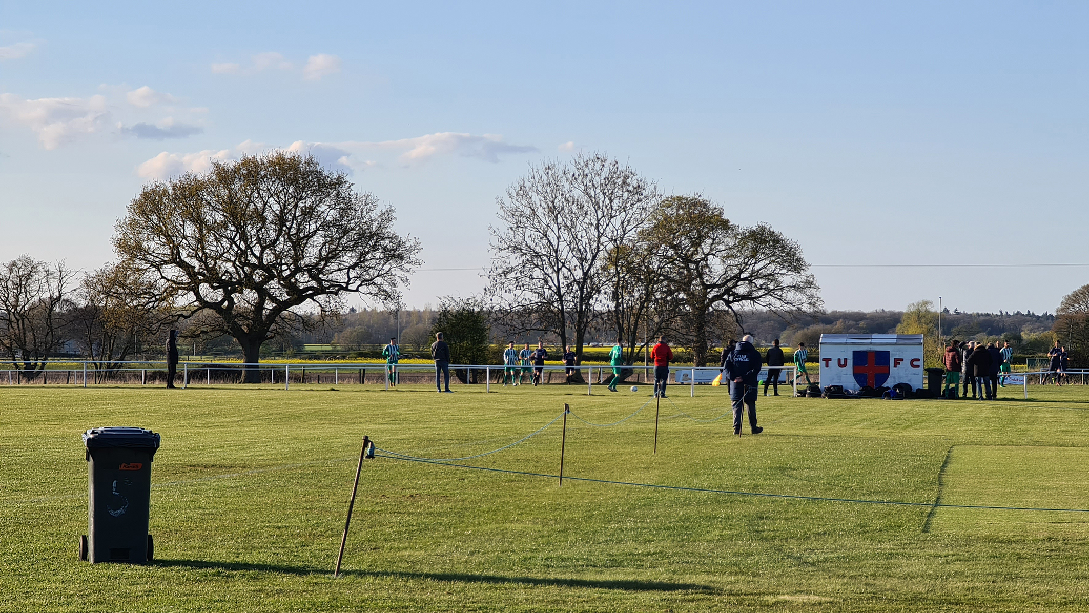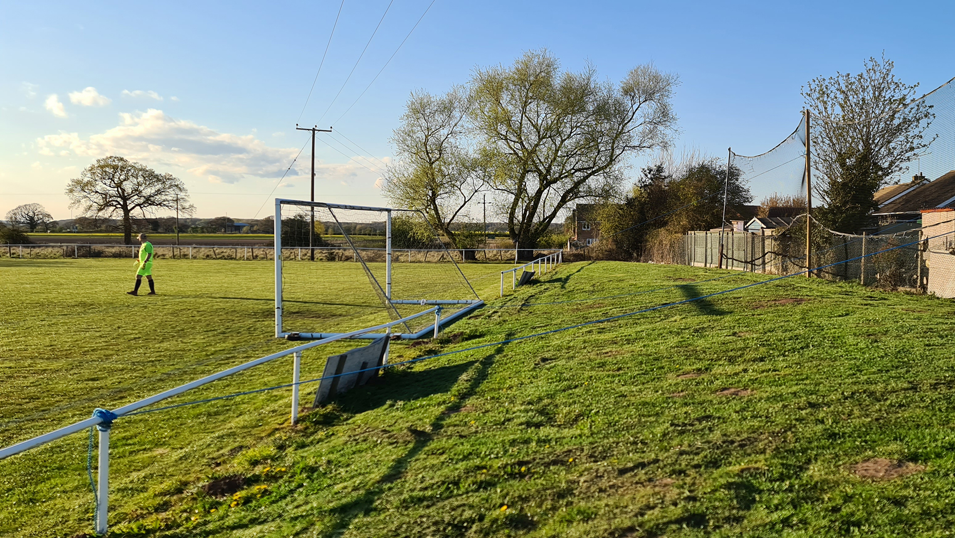 Surrounded by fields on the far side, the ball bounced over the perimeter fencing on a few occasions. We winced as we watched a Thorpe substitute, in his shorts, hop over a low barbed wire fence, half expecting him to slip and do himself a terrible injury. Surely there was a better way to retrieve club equipment, like installing a small gate, rather than risking your testicles for a flat mitre ball?