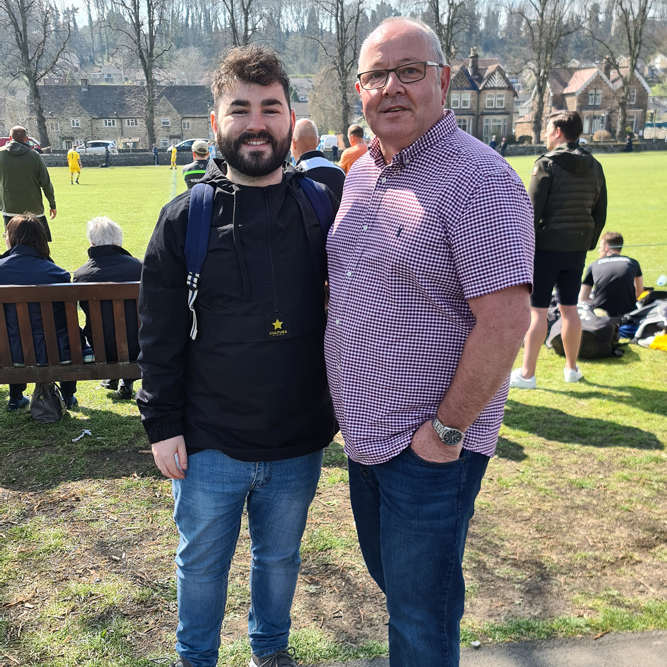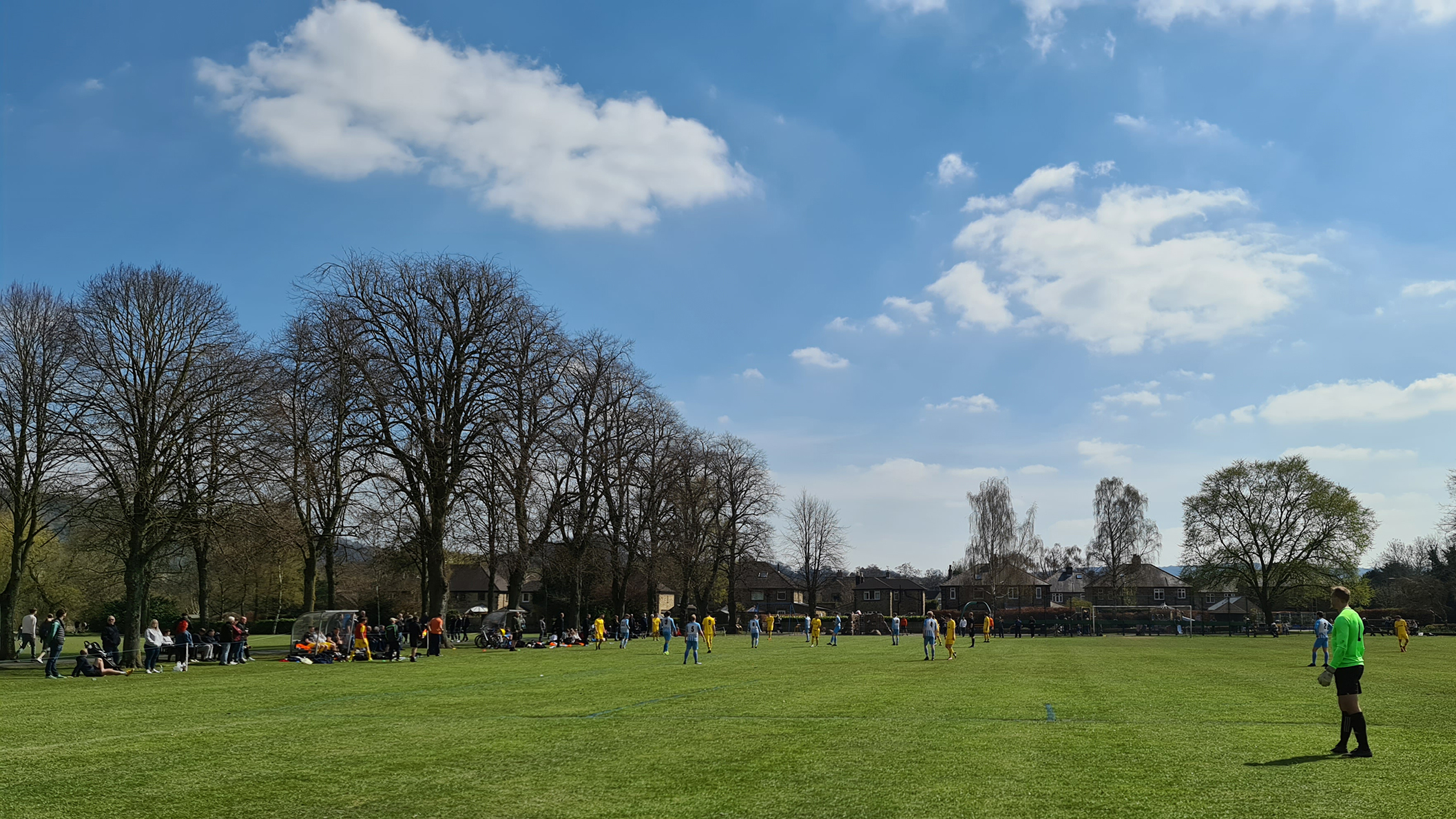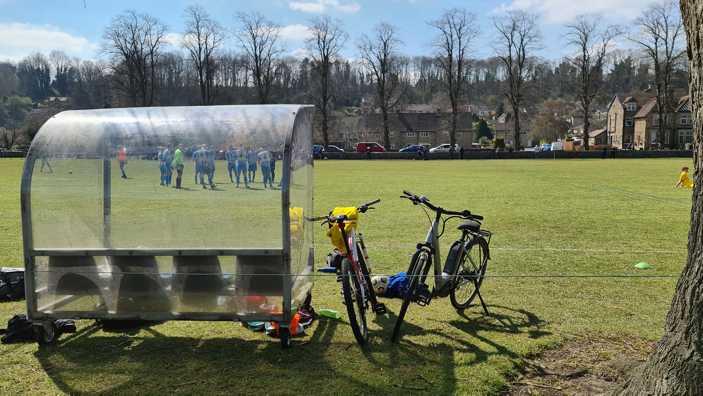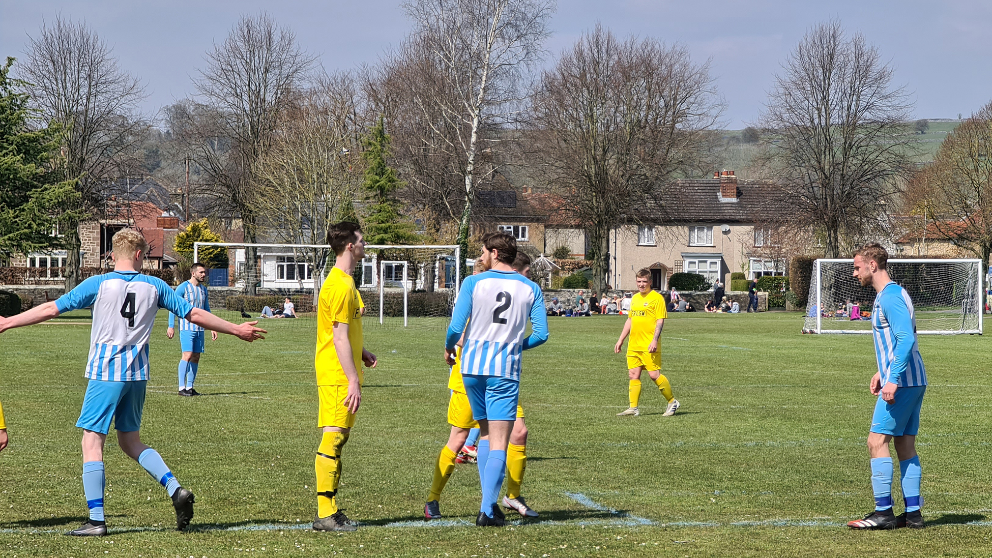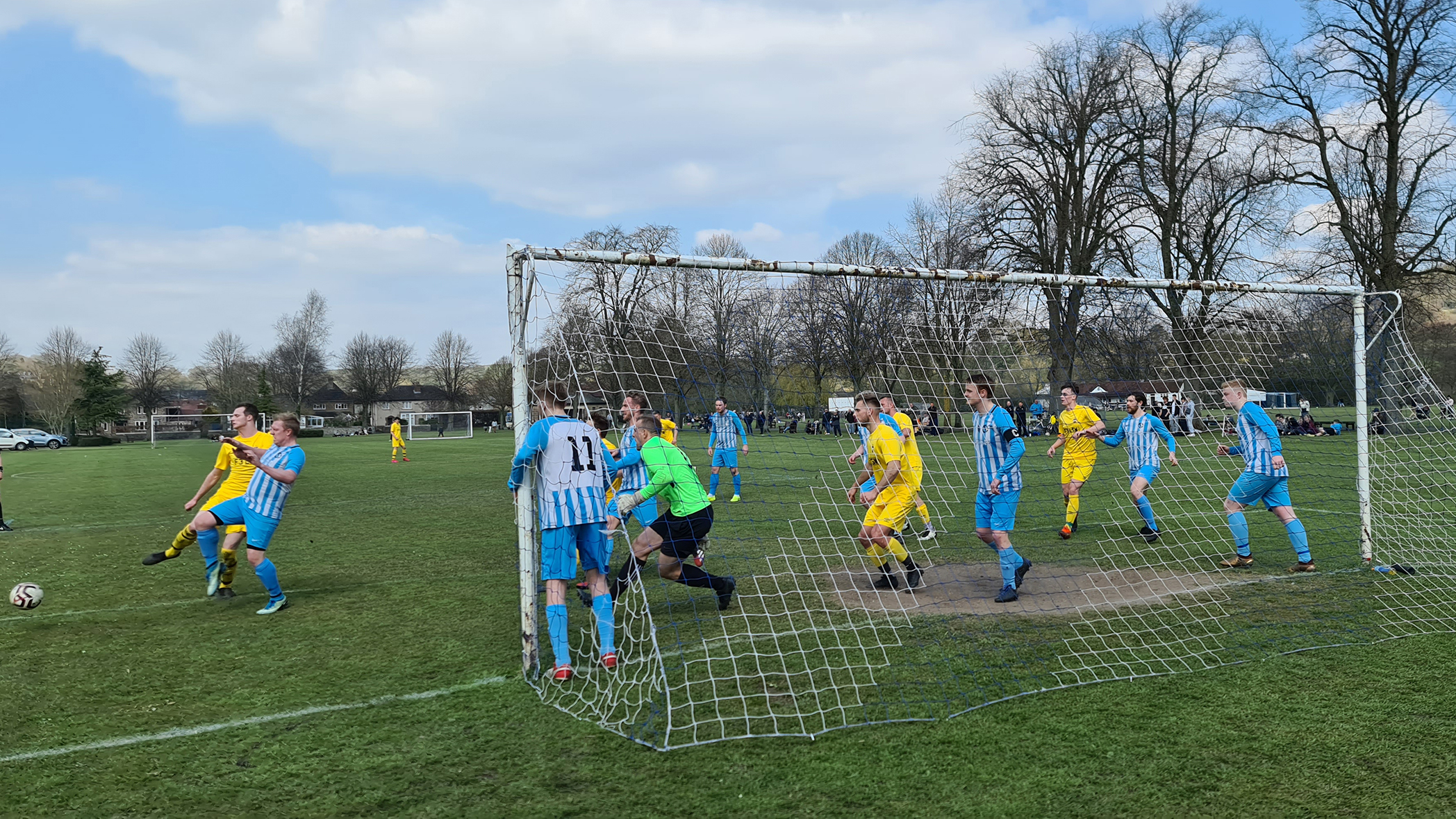 Zipping downhill into Chesterfield, we passed its famous crooked spire and continued clawing minutes back, arriving in Bakewell with just five minutes of the match gone. A sizeable crowd had gathered at the Recreation Ground, with both the cricket club and football club in action this afternoon. Spectators could watch both sports by strategically straddling the pathway which sliced directly through the middle. The football club, on this occasion, were playing on the pitch closest to the A6, with just a small dry stone wall preventing a misplaced through ball from reaching the passing traffic.