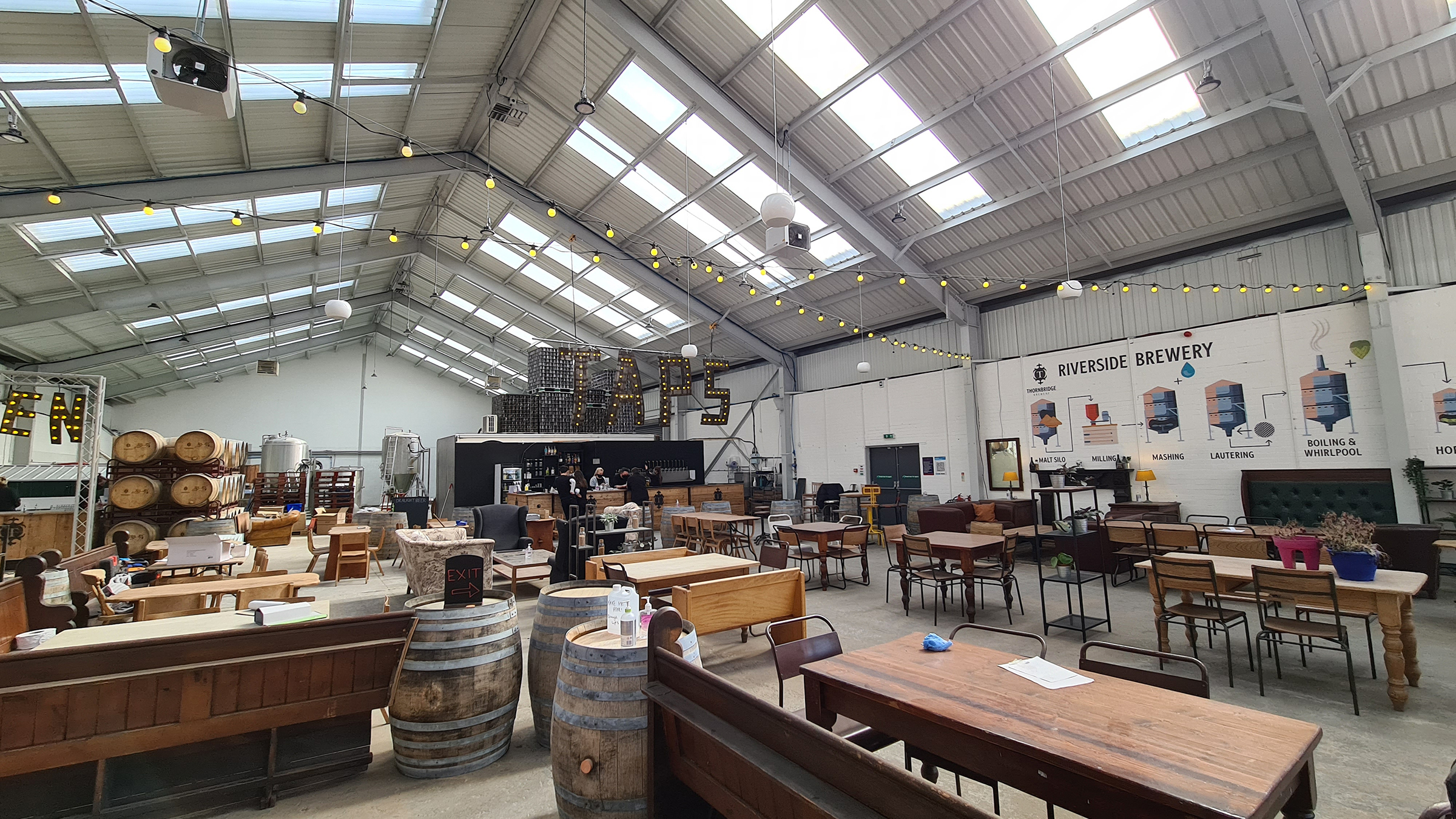 As Paul happily tucked into his overpriced desserts which I had bought for him, we headed further along the course of the River Wye, which was lined with rainbow trout, all feeding in the clear shallow waters. Further upstream, at the very end of a bland industrial estate we found Thornbridge Brewery, one of the largest and most popular breweries in the UK. Founded in 2005, their beers can now be found on the shelves of most supermarkets and they have even started branching out further afield, running their own bars.