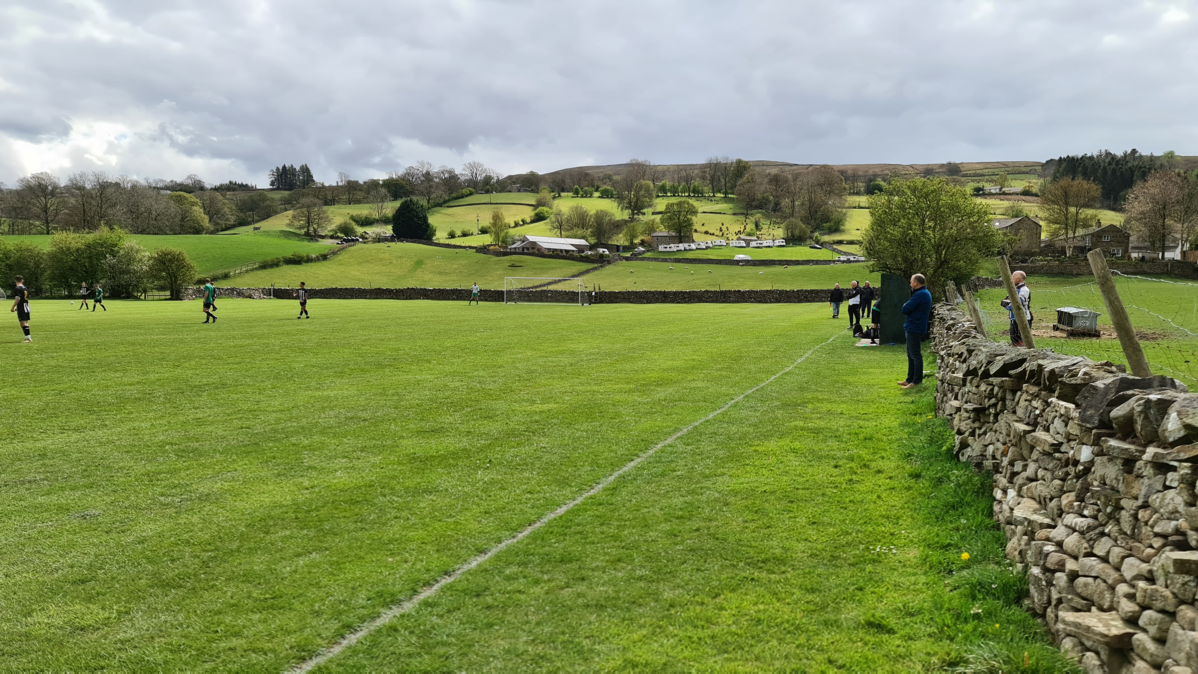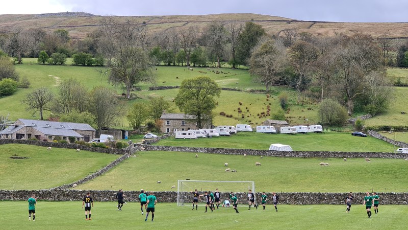 Before madness had time to ensue, Sedbergh & Dent found themselves in front after just three minutes when a corner was volleyed home at the far end of the ground. The families who were staying in the caravans that were perilously perched at an assortment of different angles in the field behind the net would have had a spectacular view of the finish. I doubt any of them were watching, probably all too busy dealing with their chemical toilets or whatever caravan owners like to do.